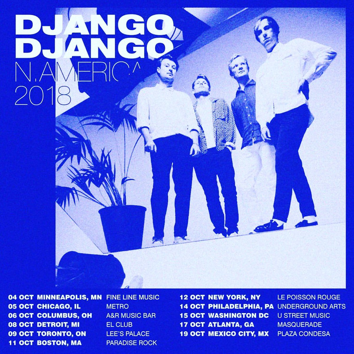 El cuarteto inglés de Django Django acaba de anunciar a través de sus redes sociales que se presentarán el próximo 19 de octubre dentro de las instalaciones del Plaza Condesa de la CDMX. Esta será la primera presentación de la banda en el país.