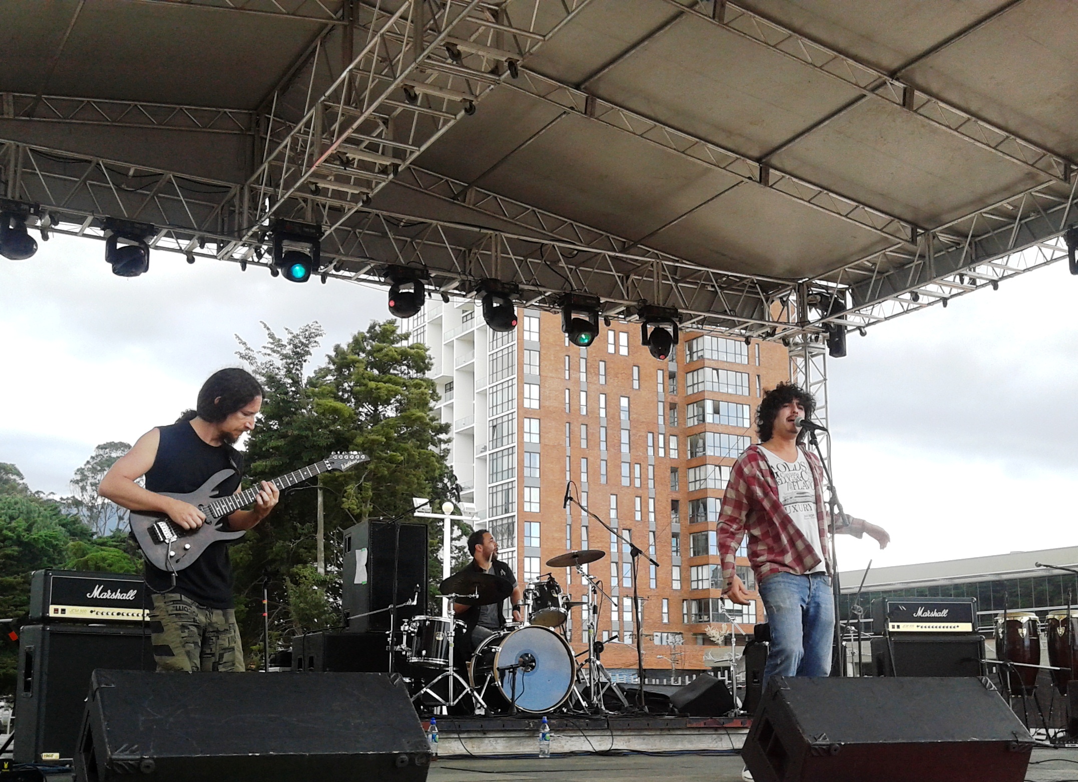 Esta novel banda enfoca su propuesta en el rock duro, al grano, y de esta manera logró acercar a algunos a la tarima. Allí habían unas 40 personas, divididas: unas estaban en primera fila, disfrutando del grupo y el resto estaban sentados en la plazoleta.