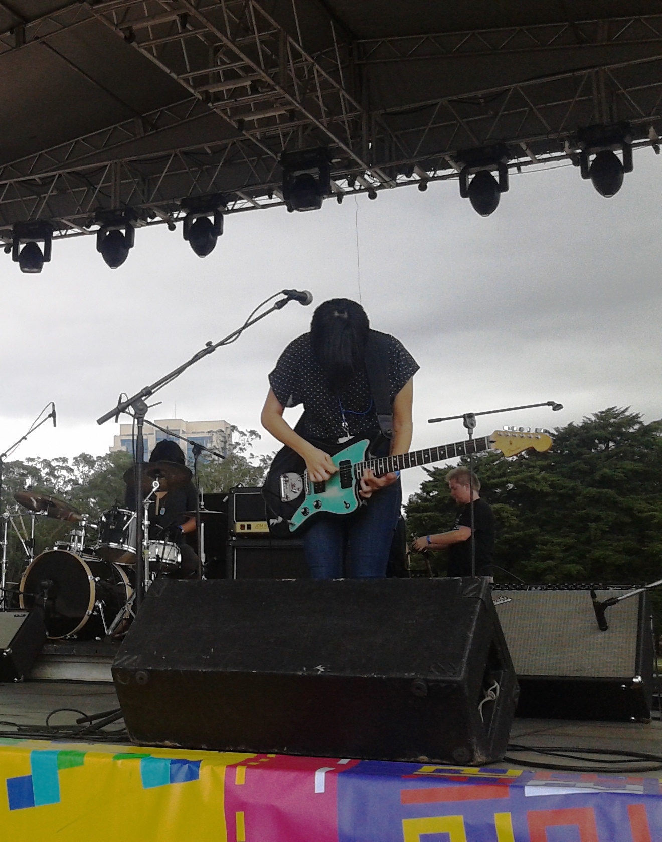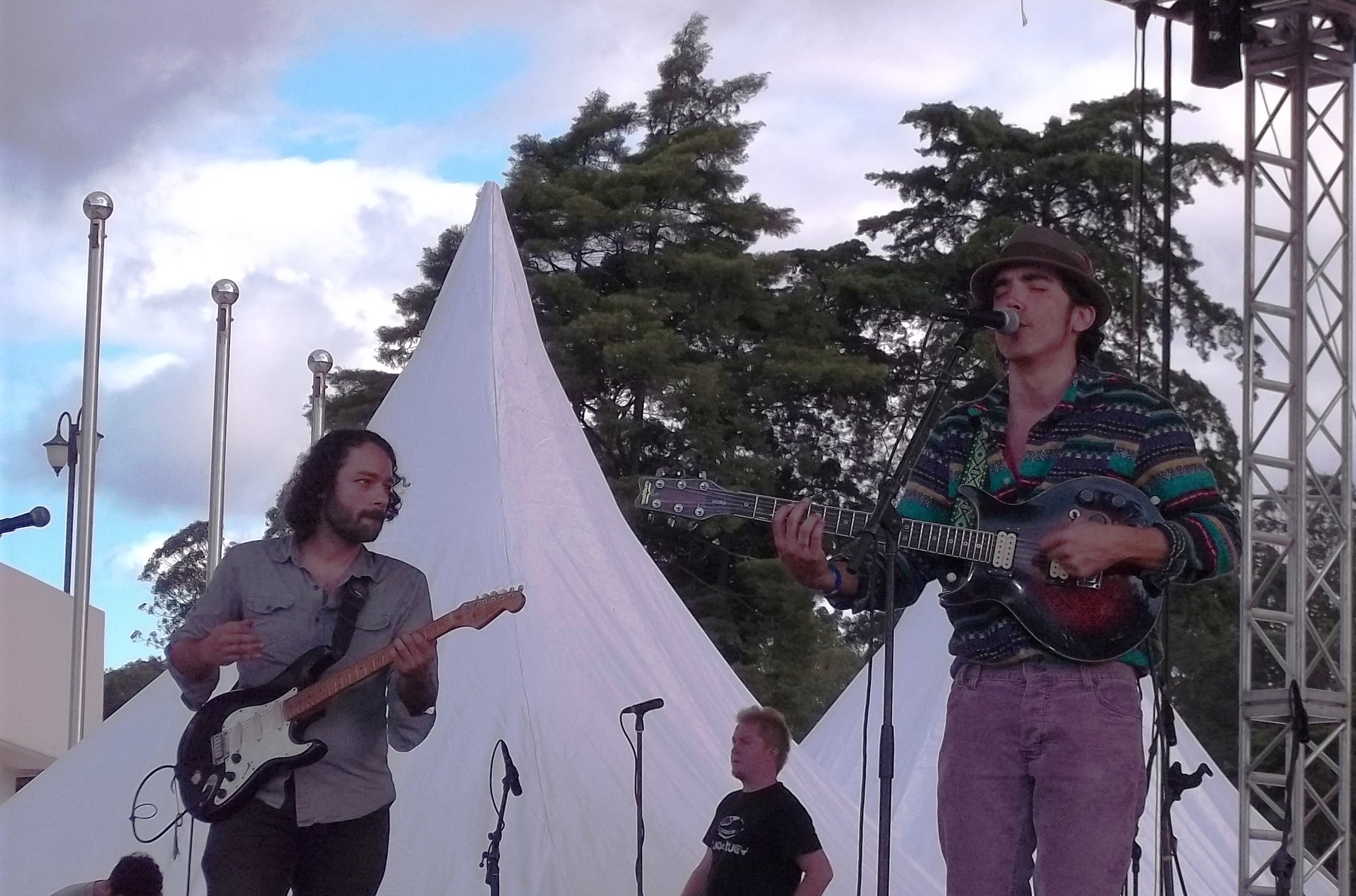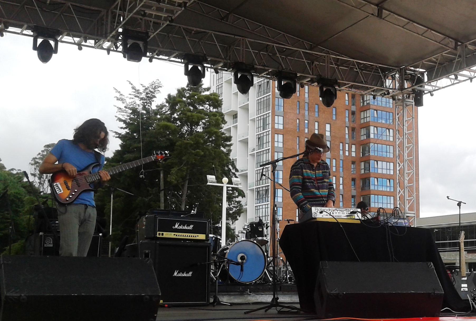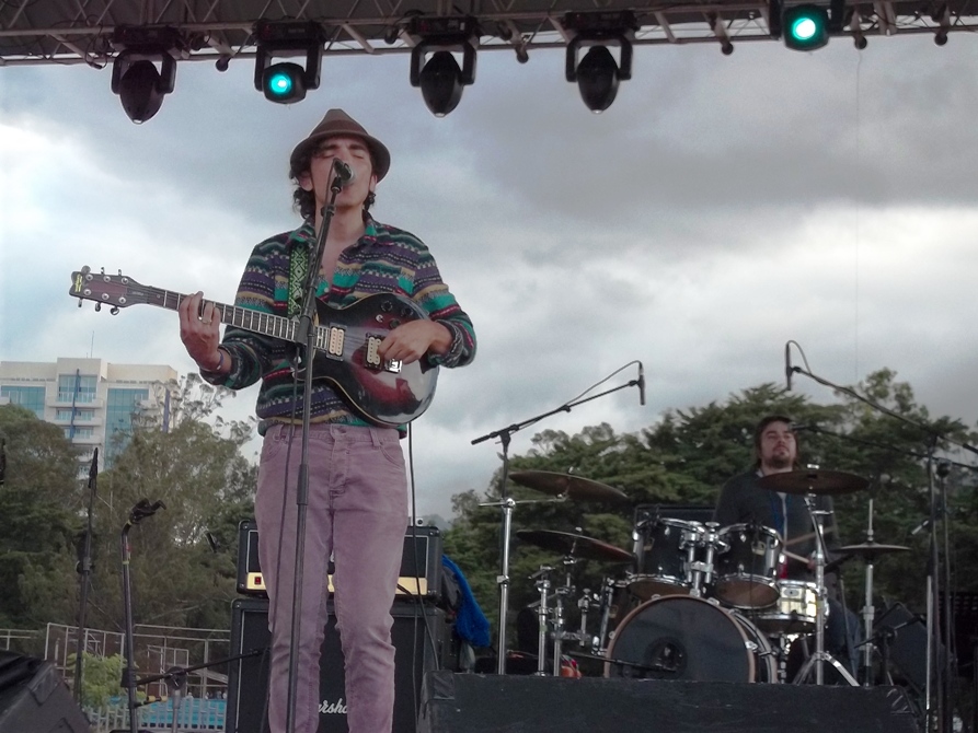 Santos&Zurdo, de hecho, fueron quienes abrieron tarima ese día con su psicodélica propuesta electrónica. El sol, caprichoso, no quiso calentar los ánimos del público, pero Santos&Zurdo ciertamente sí. Las secuencias de Zurdo, el sitar de Santos Gassiebayle y el bajo de su más reciente integrante, Luigi Jiménez, capturaron la atención de las 20 personas que estaban viendo el concierto en ese momento y ciertamente las hicieron disfrutar.