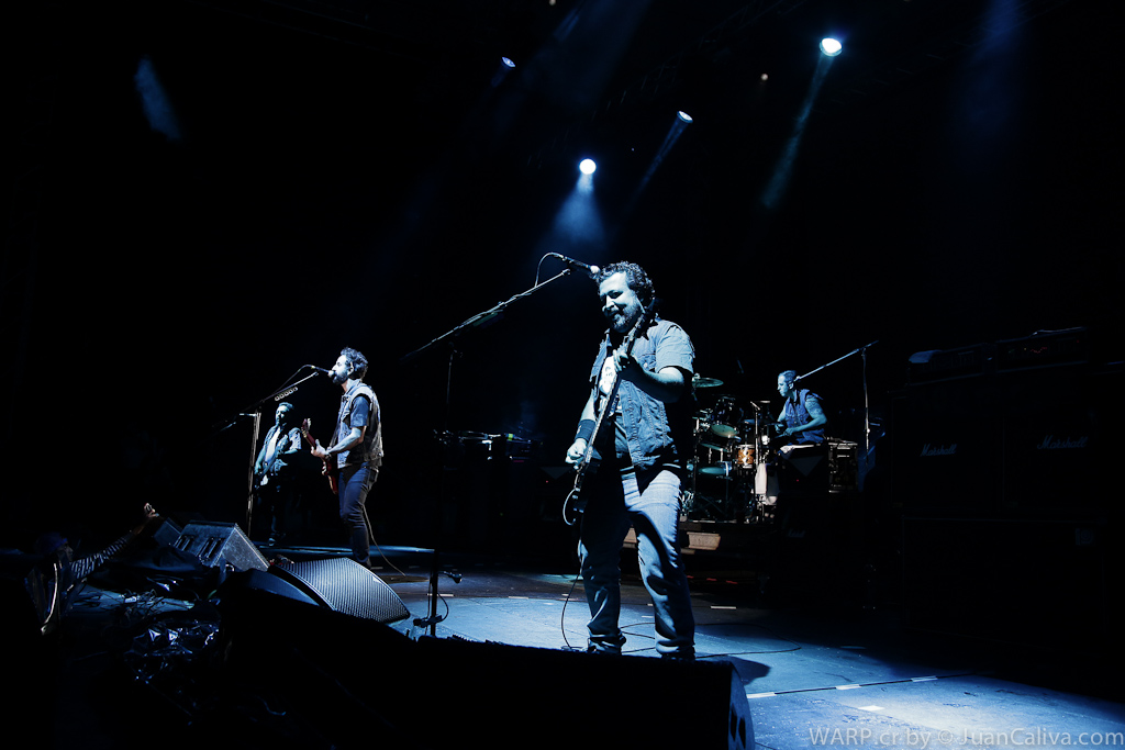 A las 8:35 p.m. y sin mucha pose los muchachos de Molotov tomaron el escenario. Tito cantaba la letra de ‘Noko’ y el público comenzó a encenderse. Miky y paco se encontraban a los lados del escenario, tocando cada uno un bajo y detrás de Tito, en el centro, estaba Randy en la batería.