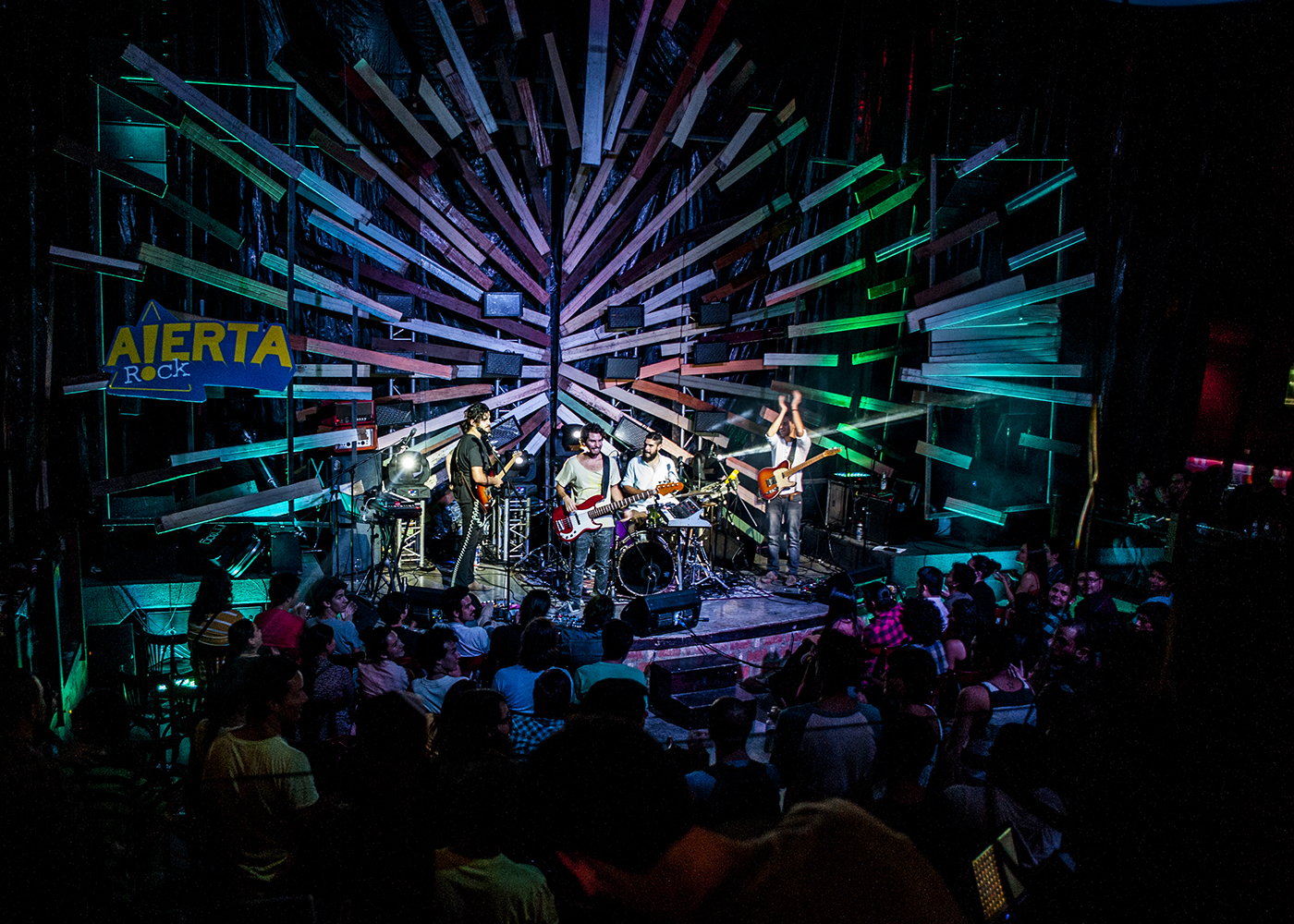 El escenario del Jazz Café Escazú vestía una serie de reglillas de madera desechada, dispuesta en forma de vórtex o, si se quiere, simulando un estallido que nacía en el centro del escenario. Esta organización de la escenografía, sumada a las luces y la posición de los músicos, hizo que la puesta en escena se percibiera bastante fresca desde el inicio del concierto.